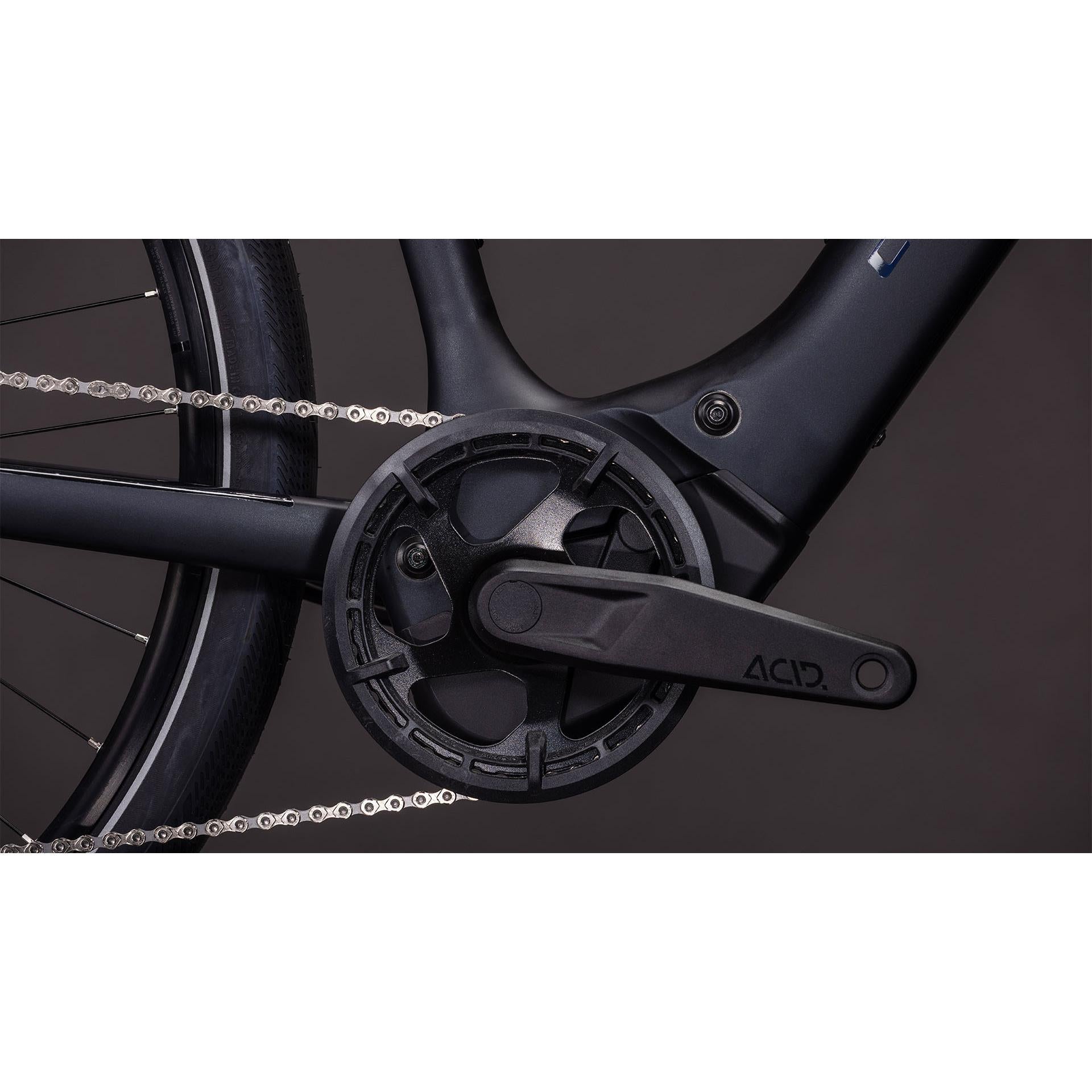 The Cube Editor Hybrid Pro 400X Electric Hybrid Bike in Coal'n'Prism is a versatile and efficient choice for urban commuting and leisurely rides. With a powerful Bosch motor delivering 60Nm of torque and a 400Wh battery, this bike ensures a smooth and extended ride. Its lightweight aluminium frame and full carbon fork provide excellent handling and comfort. Equipped with Shimano hydraulic disc brakes, it offers reliable stopping power in all conditions. The bike's sleek design and advanced internal cable routing make it a stylish and practical option for modern cyclists.