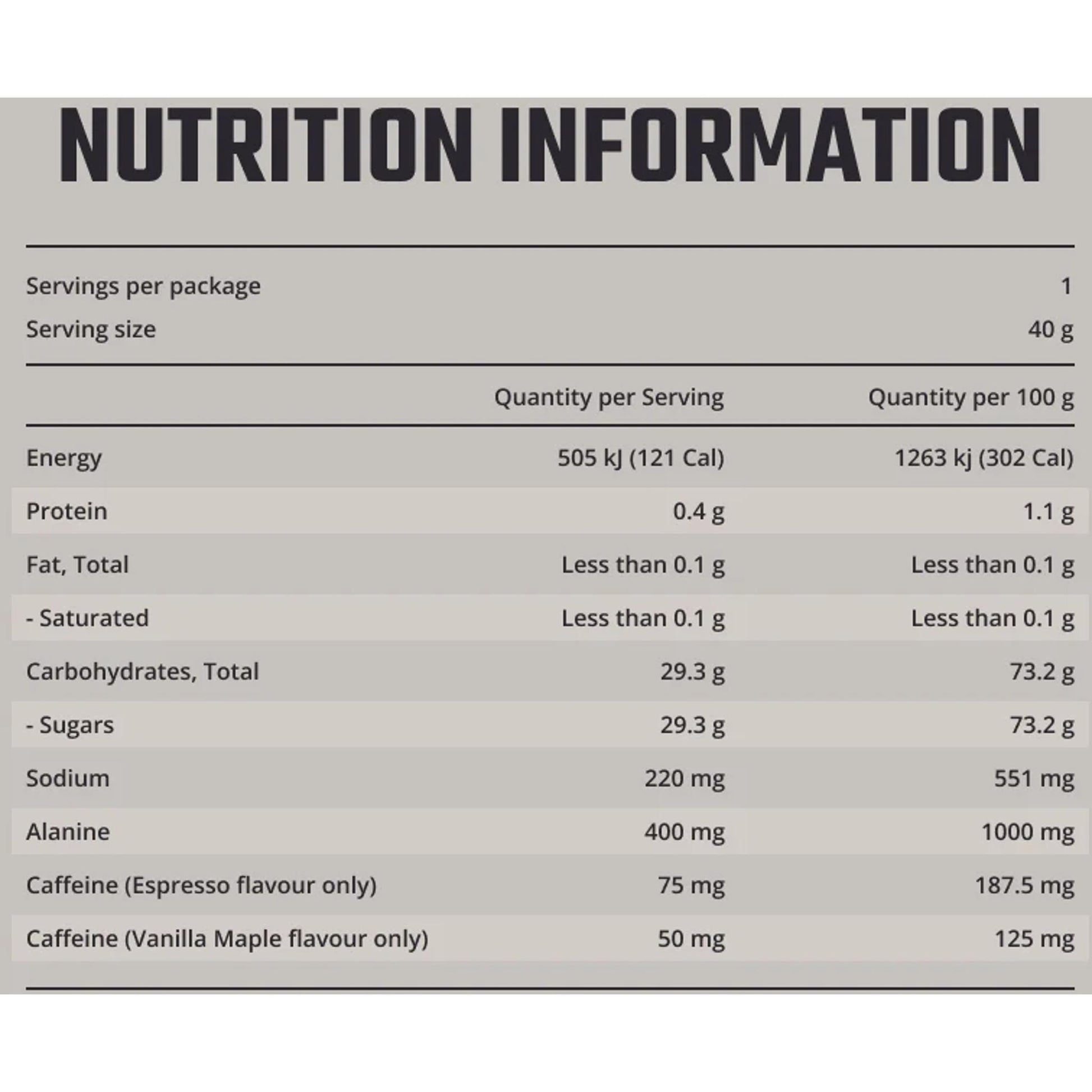- 220mg sodium 50mg naturally occurring caffeine