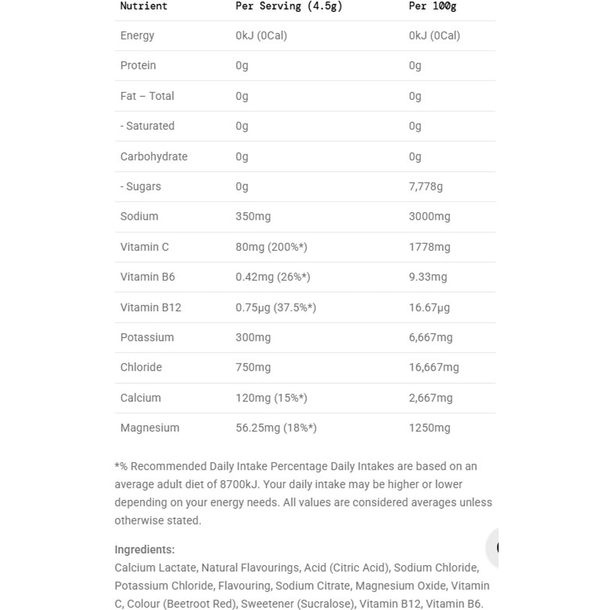- Five essential electrolytes per serving