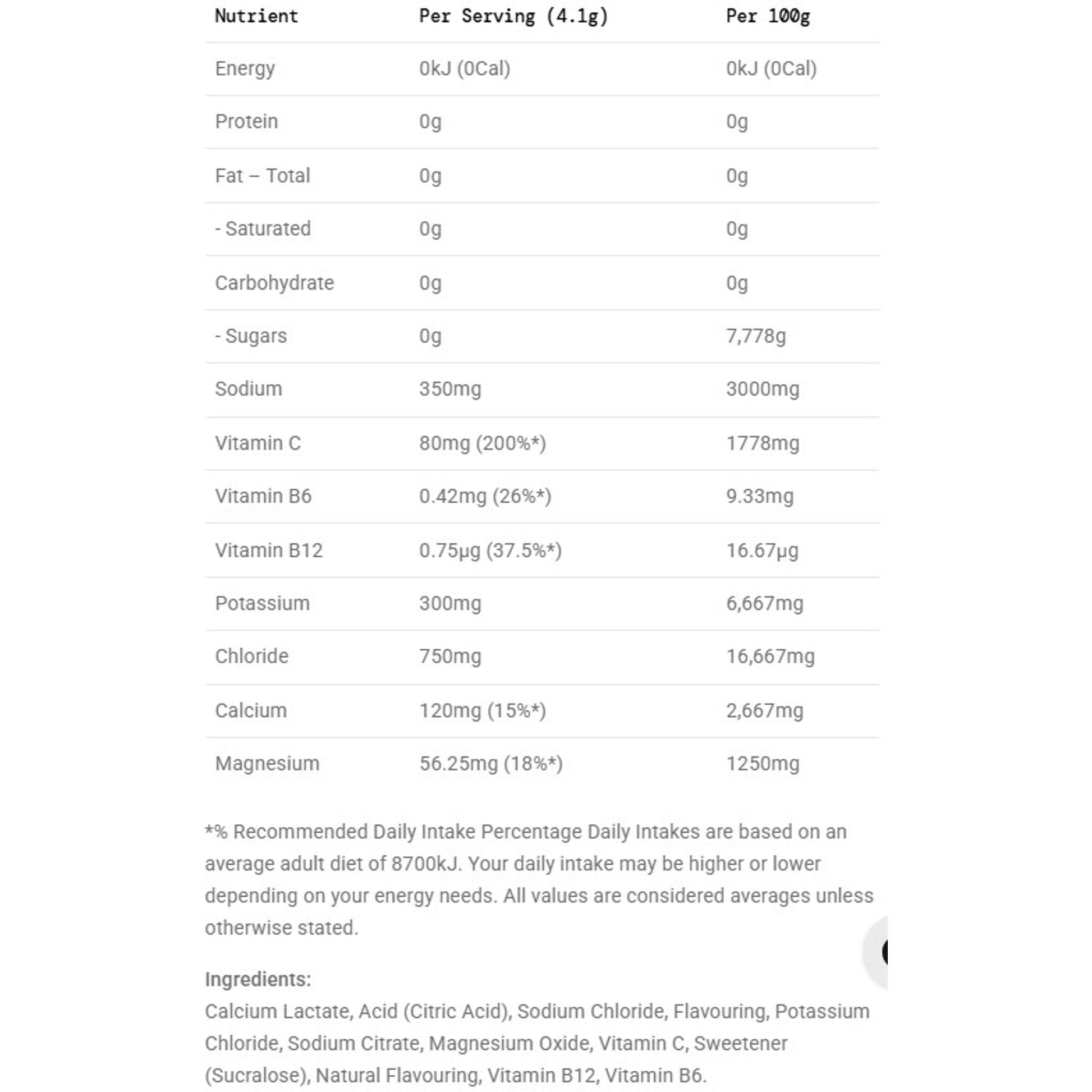 - Five essential electrolytes per serving